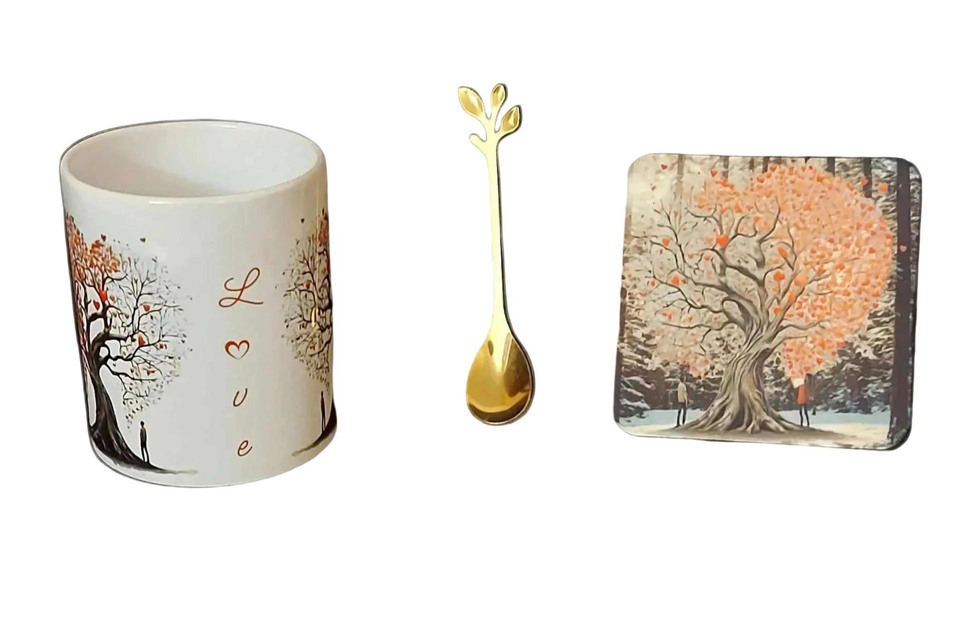 Tree of Love Mug Set – 3 Piece Mug, Coaster & Gold Leaf Spoon